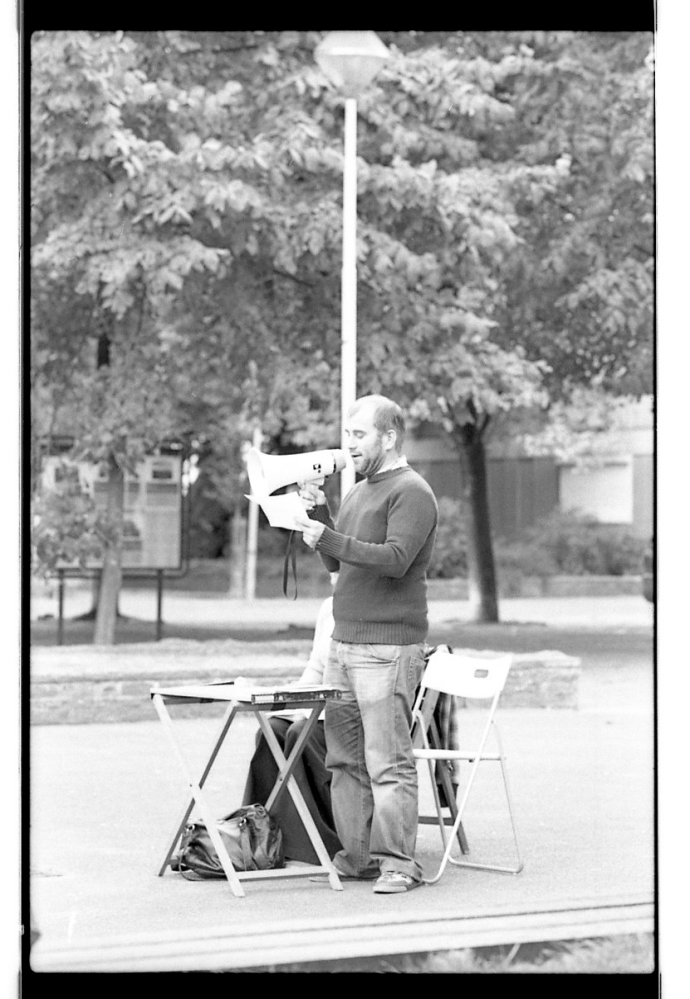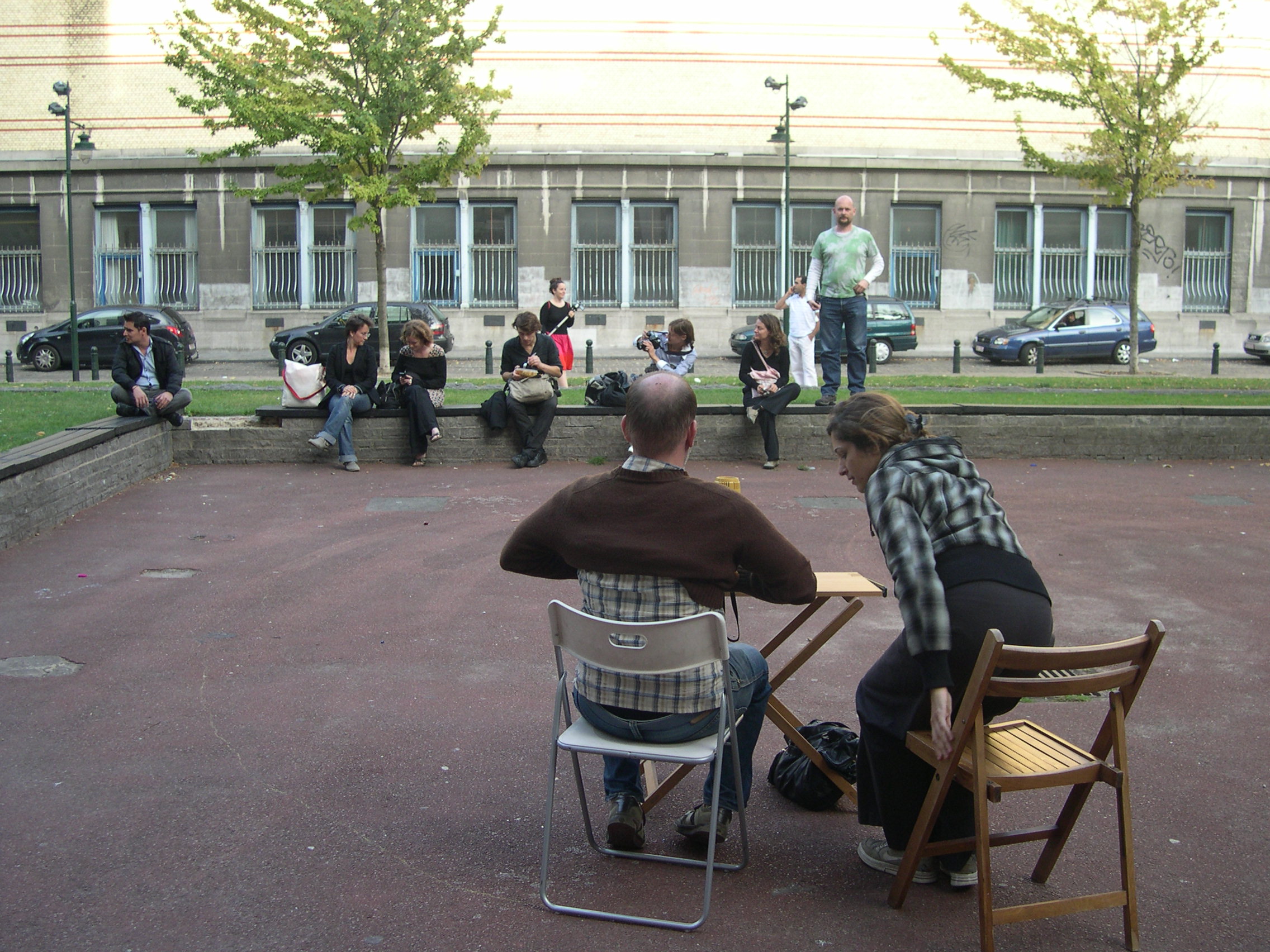 Pendant 2 semaines nous avons travaillé dans les logements sociaux de la rue Dansaert, réputée pour ses boutiques de mode et design. C’est ce contraste de population qui nous a attiré. En journée, nous avons côtoyé des seniors et des adolescents, groupes qui ne se fréquentent pas mais qui partagent un mécontentement par rapport à leur lieu de vie sans avoir l’occasion d’exprimer ce qu’ils pensent. Nous leur avons proposé d’écrire anonymement ce qu’ils auraient envie de crier et faire entendre en leur donnant une enveloppe que nous lirons le jour de la performance. Munis d’un parlophone pour être certains que ce soit entendu, nous avons décacheté les 50 lettres reçues et révélé leur contenu dans la cour des 5 blocs.